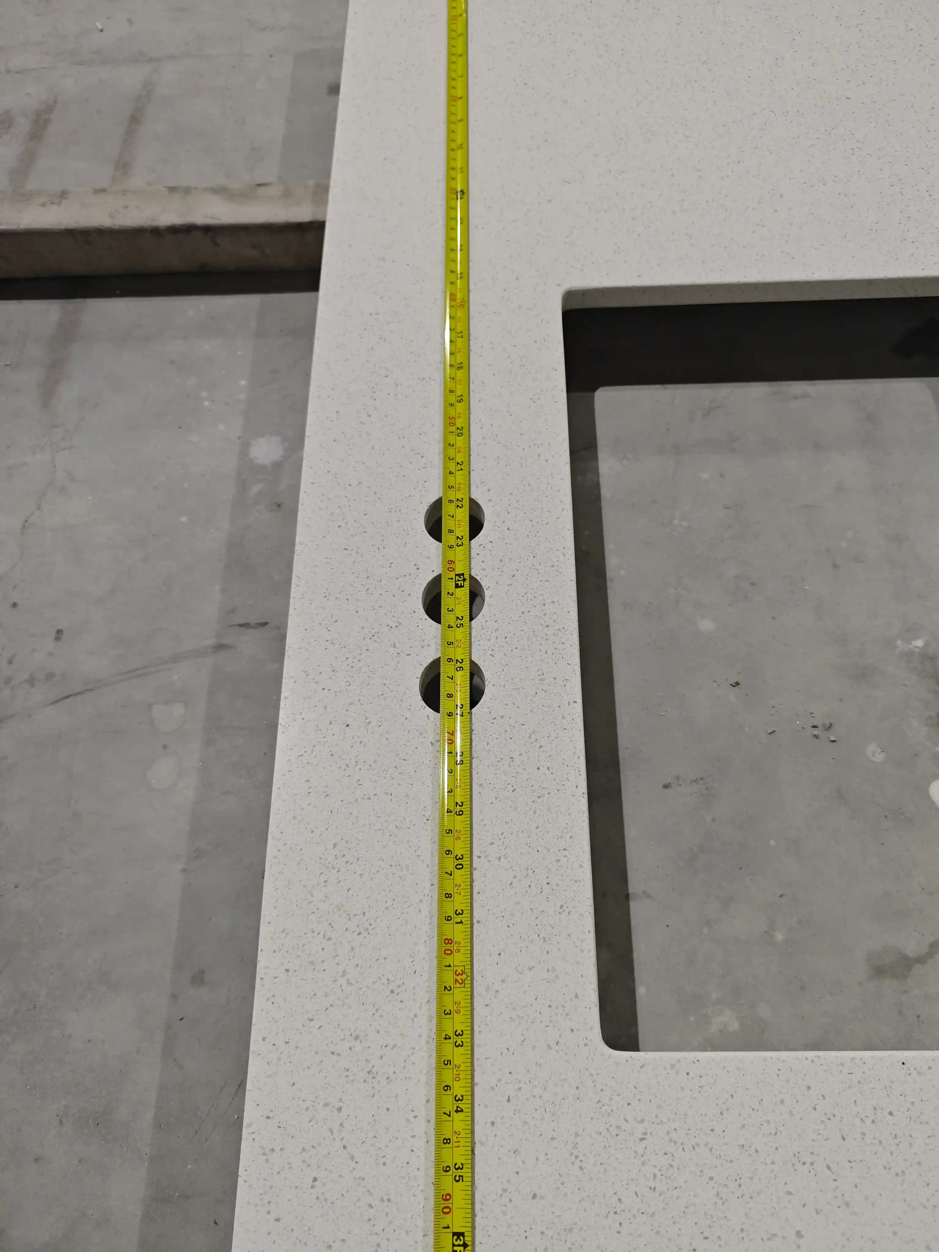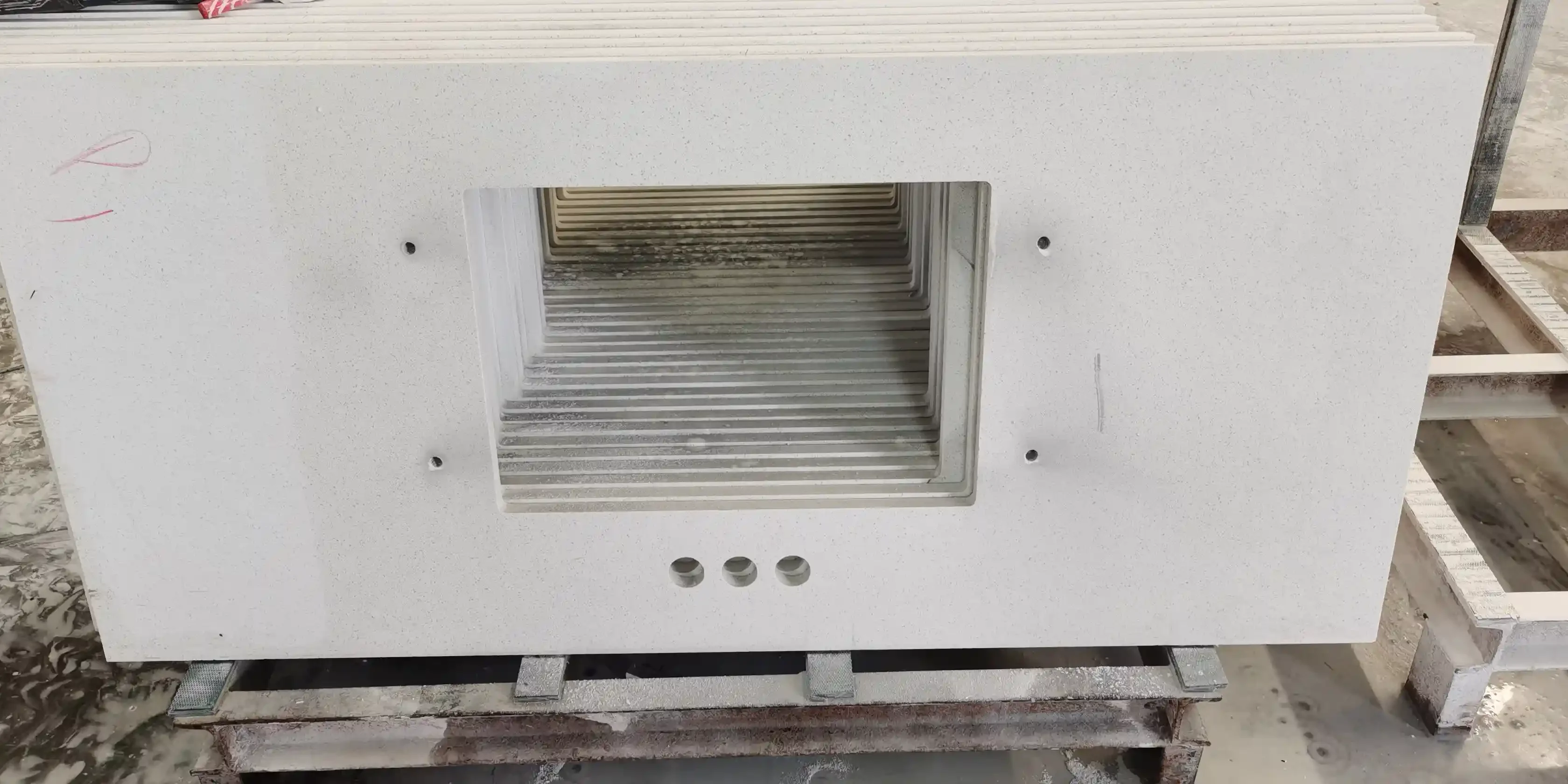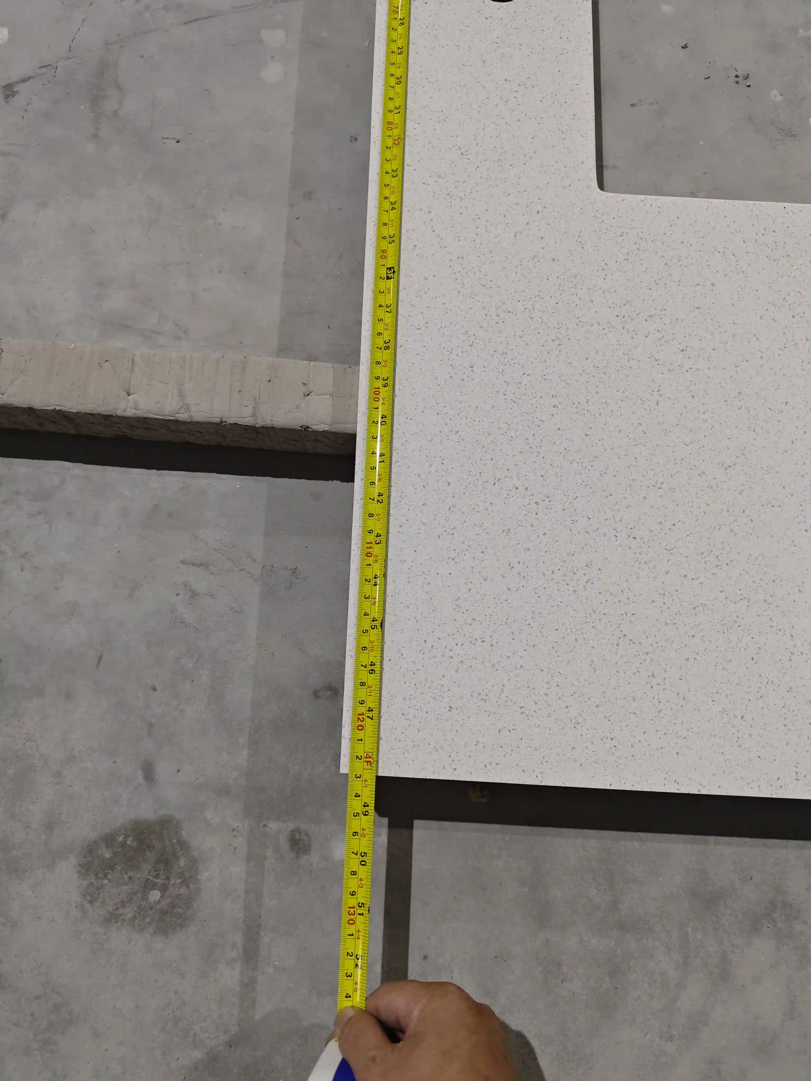 Each countertop’s length, width, and thickness are measured with a tape measure. All dimensional errors are controlled within ±1mm. This meets North American building material industry tolerance standards. It ensures zero rework during on-site installation.