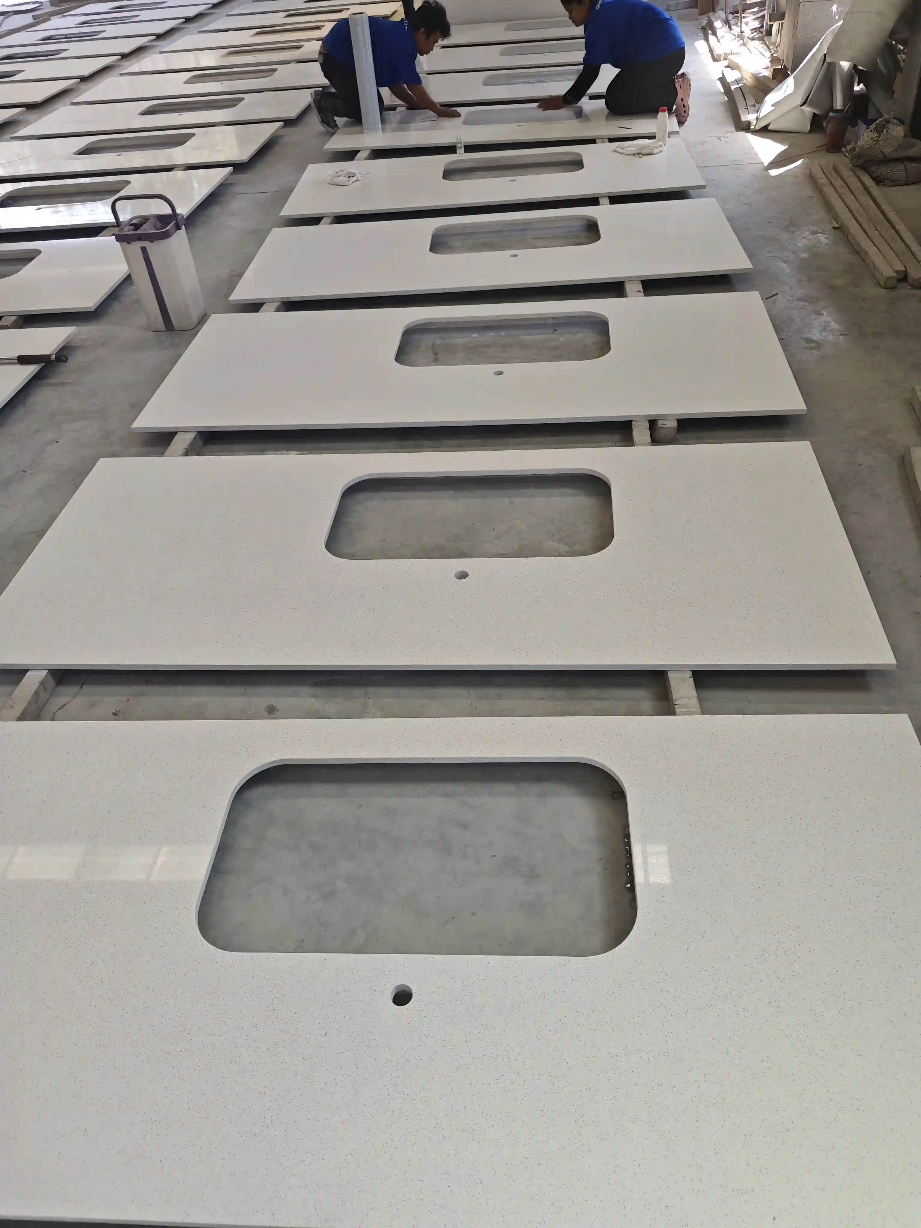 For sink cutouts, a special check is done on edge smoothness. Edges must be free of burrs and chips. This ensures the sink installs with a watertight seal, preventing leaks. The precision of the R10 rounded edge polishing is also verified to meet hotel safety standards.