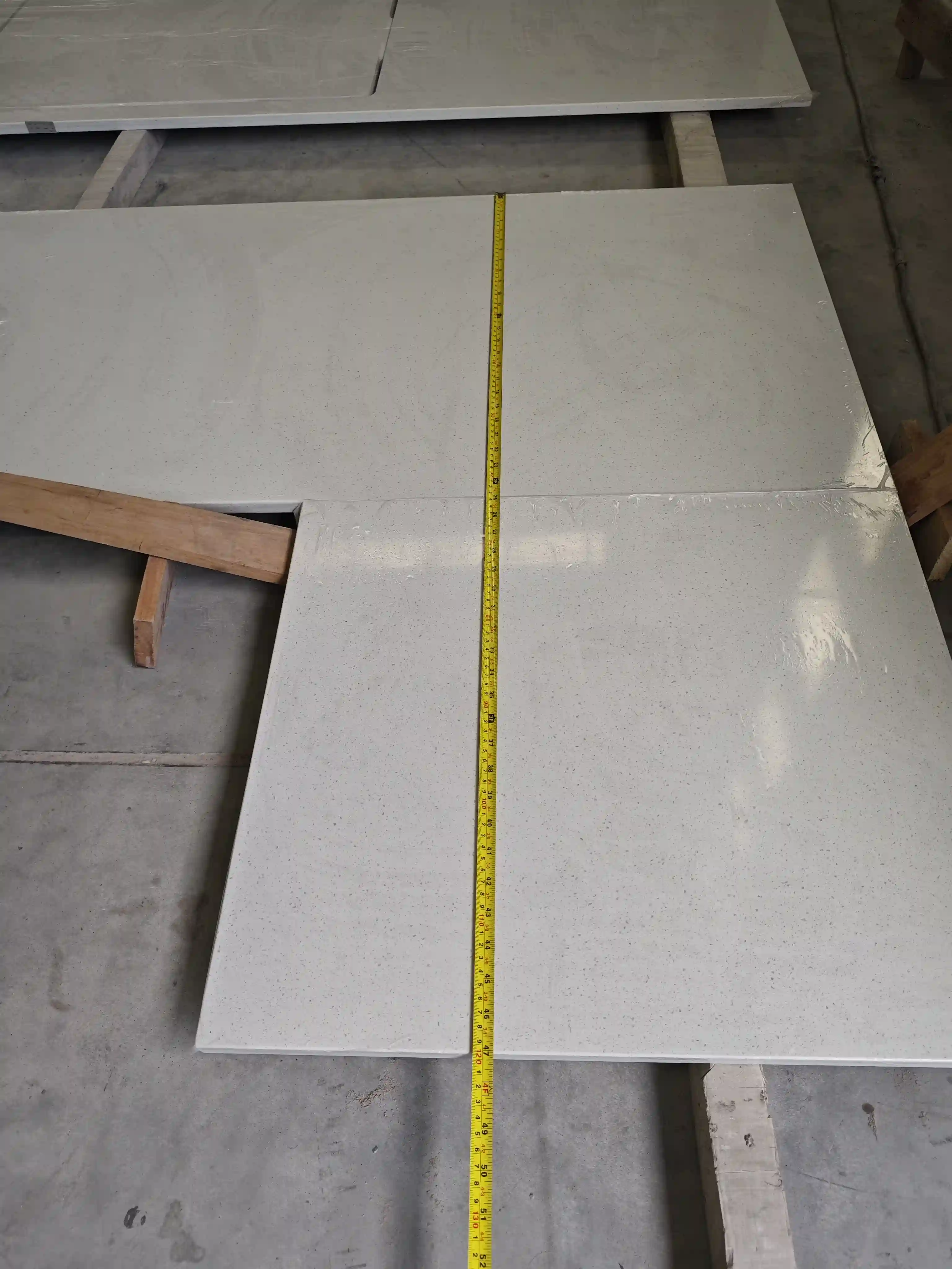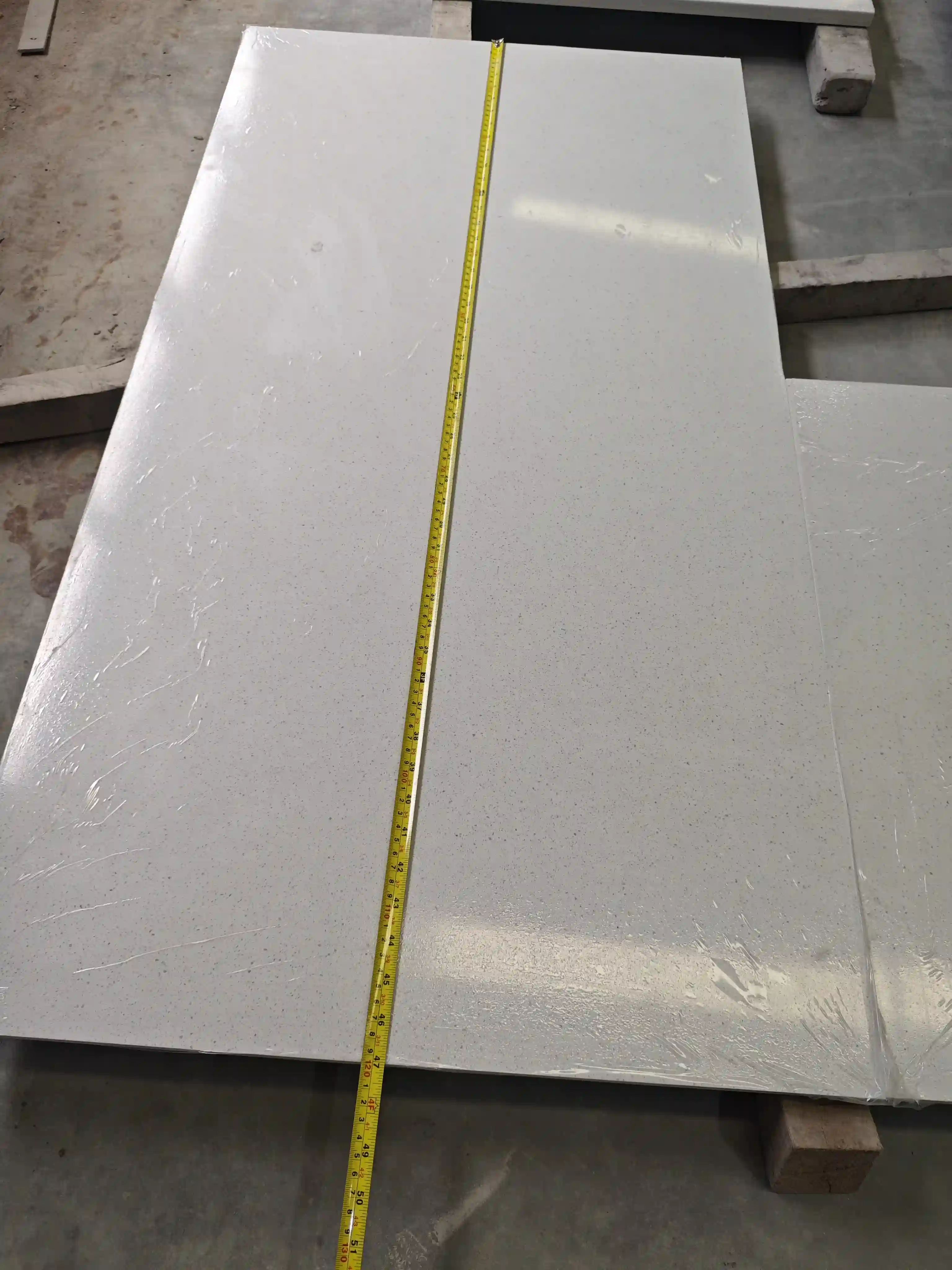 Kitchen L-shaped Countertop: A custom 2400mm x 600mm standard L-shaped top is fabricated. The 90-degree corner fit is ≤0.5mm, perfectly adapting to the integrated installation of the American-style kitchen island and cabinetry.