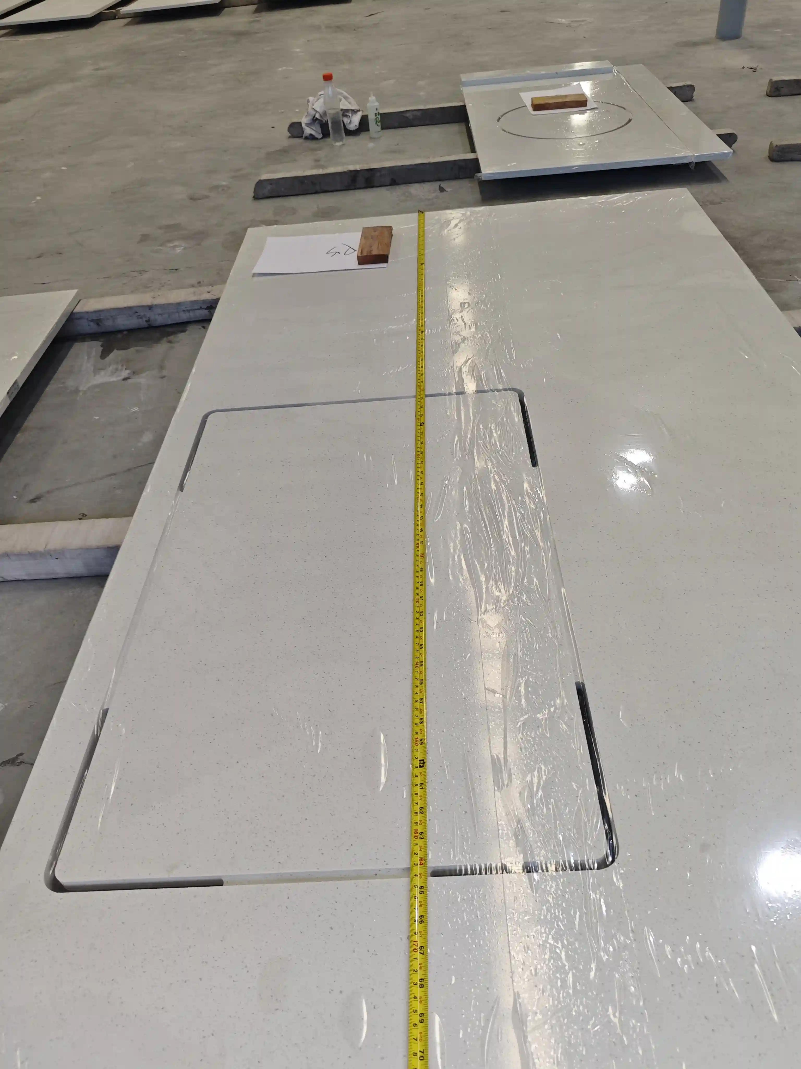 A dedicated inspection is performed on the round basin cutouts, recessed slots, and L-shaped corners. The focus is on edge smoothness, ensuring they are free of burrs and chips. This guarantees a watertight seal and prevents leaks when basins/appliances are installed. The polishing precision of the 45° chamfer and R10 rounded edges is also verified to comply with residential safety standards.