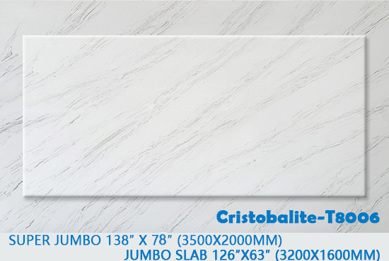 Here is a new product - Cristobalite! It is distinct from quartz stone with its low silica content, high whiteness, resistance to yellowing, high-temperature durability, and low oil absorption. Production sizes: 126"x63" and 138"x79". Feel free to inquire for more information.