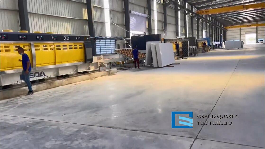 2. Purchased the latest quartz stone slabs and quartz stone countertop production equipment to form a complete production line.